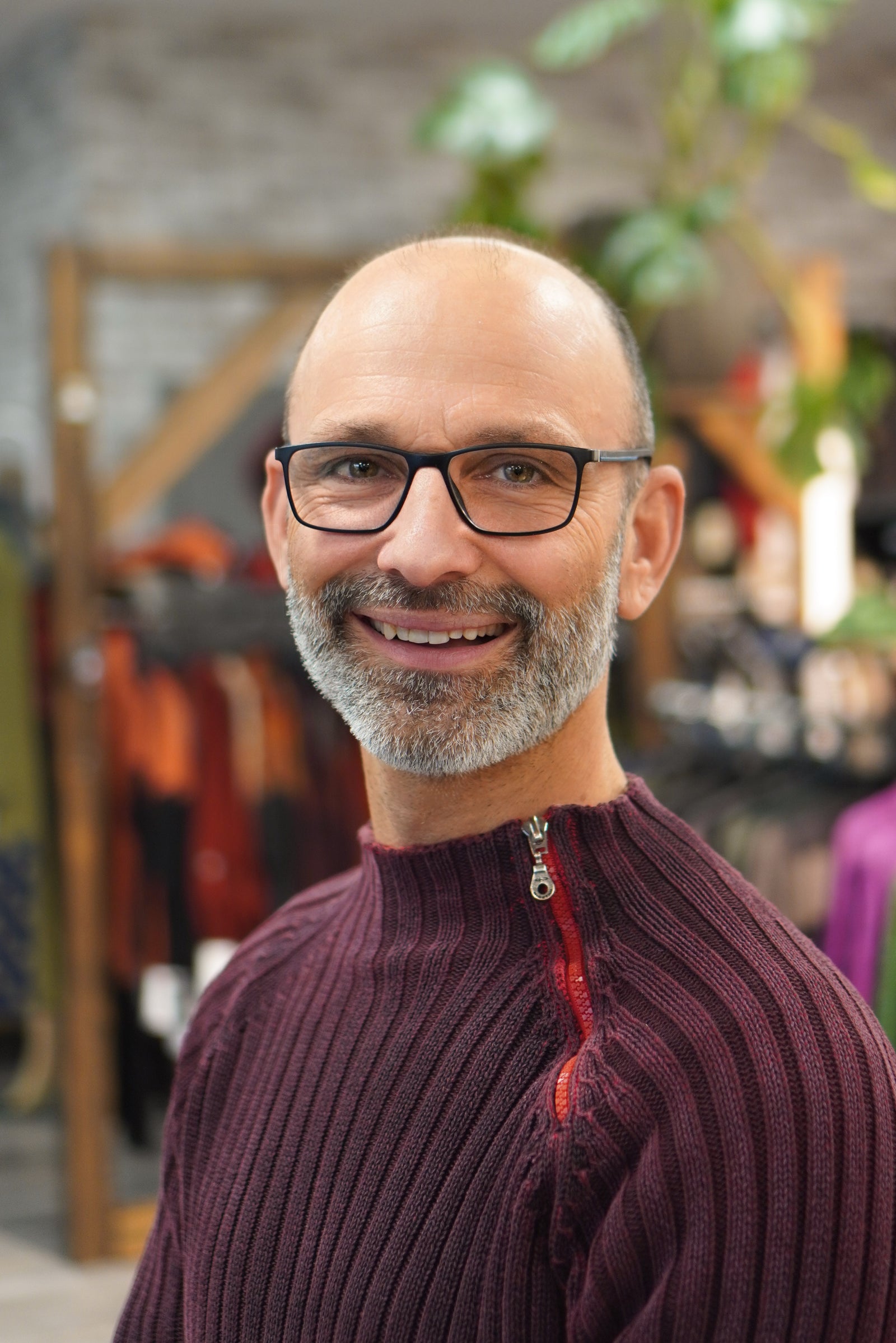 Lukas kleidet sich am liebsten in bewundernswerte Gelassenheit, hat das Auge fürs Detail und die technischen Dinge des Lebens. Kein Wunder also, dass er als leidenschaftlicher Computer-Freak und Problemlöser unter anderem unseren Online-Shop voranbringt. Bei ihm laufen zunächst alle Fäden zusammen: Kunden, Lieferanten, Händler – er ist meist der erste Ansprechpartner und steht im Stoff, wenns darum geht, alle wichtigen Fragen zu beantworten – sei es am Telefon, per Mail oder im Live-Chat. Sorgen, Anregungen, Wünsche? Als Kundenbetreuer und engagierter Kümmerer freut er sich darüber, wenn er helfen kann. Mit kühlem Kopf ist er der Gegenpol zu den feurigen Designer-Herzen in der Familie. Er hat die Landkarte im Blick, wenn die kreativen Freigeister sich Hals über Kopf in neue Ideen stürzen, ist aber selbst immer auf der Suche nach einer Abkürzung. Zahlenjongleur und Buchhalter, Macher und Technik-Experte – eigentlich eher zurückhaltend, aber wenns drauf ankommt ein Meister der flachen Spontankomik. Schlechte Laune? Eine Seltenheit. Verfitzt? Verheddert? Kein Problem! In Seelenruhe löst er die Knoten und bringt alles wieder auf Linie – Achtung der kommt flach! – on line, sozusagen. Die Suche nach der optimalen Lösung – Lukas liebt sie. Wenn andere schon längst die Flinte ins Korn werfen, dreht er noch jeden Grashalm auf links, um ans Ziel zu kommen. Aber nicht aus blindem Perfektionismus, sondern – wie er selbst mit einem Augenzwinkern sagt: wegen seines ausgeprägten Hangs zur Arbeitsvermeidung. Sein eigener Kleidungsstil ist pragmatisch, praktisch, gut, mal sportlich chic, aber immer bequem – in Sachen Mode also der klassische Mann. Andererseits auch ganz untypisch: die größte Frostbeule im Haus. Dennoch: Er brennt für die Familie, für unsere Mode und zufriedene Kunden.